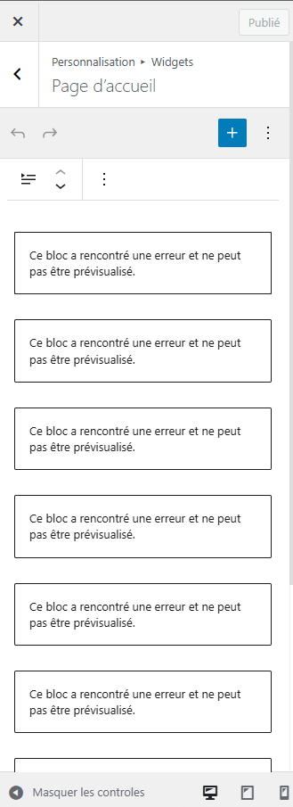 “This block encountered an error and cannot be viewed” (translated from french)
